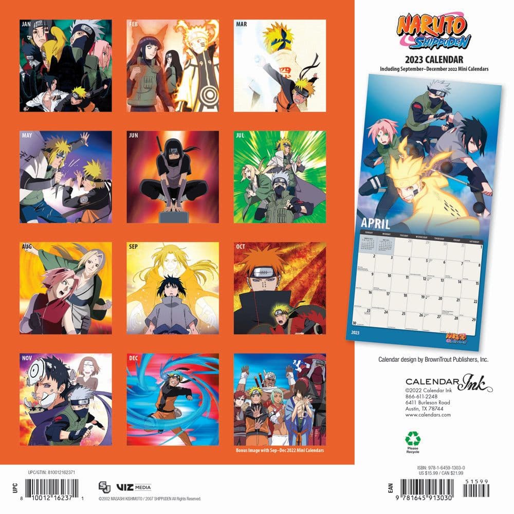 Naruto 2023 Wall Calendar. This calendar is perfect to keep in your. Enjoy your favorite characters from your favorite anime Naruto all year long Collections: All, Anime series, Best Sellers, Daily Deals, New Arrivals.